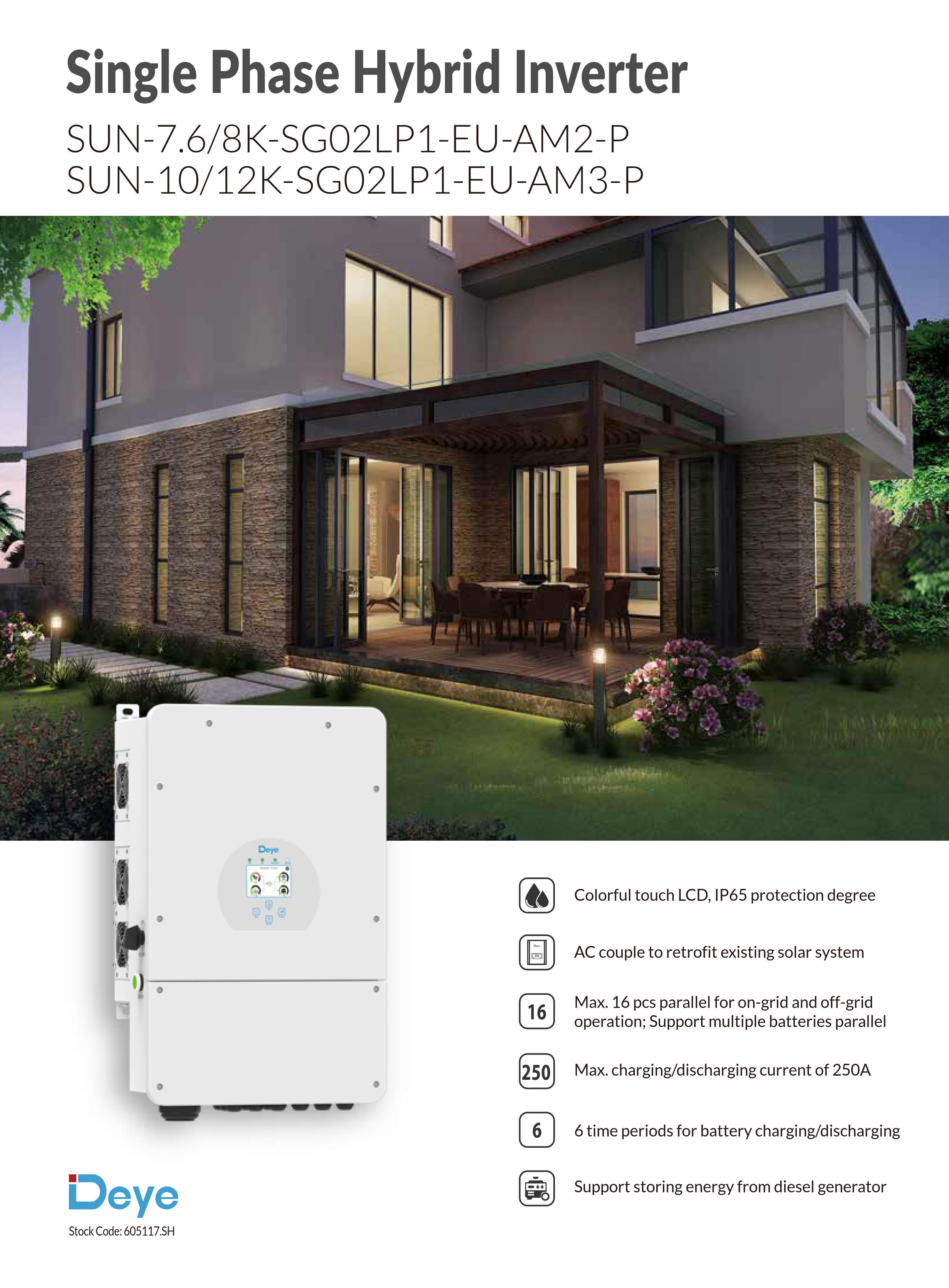 Deye SUN-12K-SG02LP1-EU-AM3-P Low Voltage Single Phase 2MPPT hybrid inverter