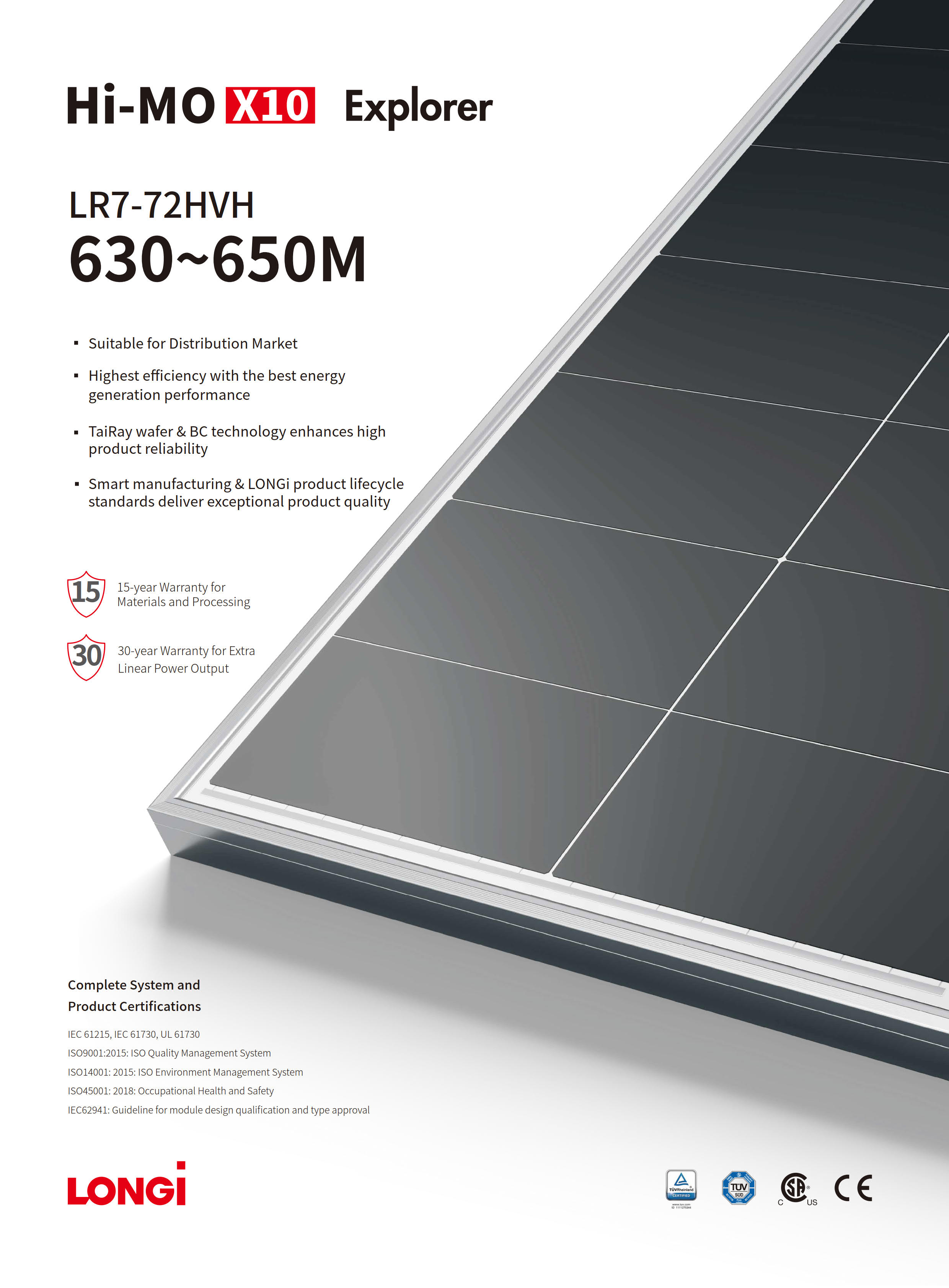 LONGI Hi-MO 640W N-Type Silver Frame Singel Glass Solar Module 2382*1134*30mm