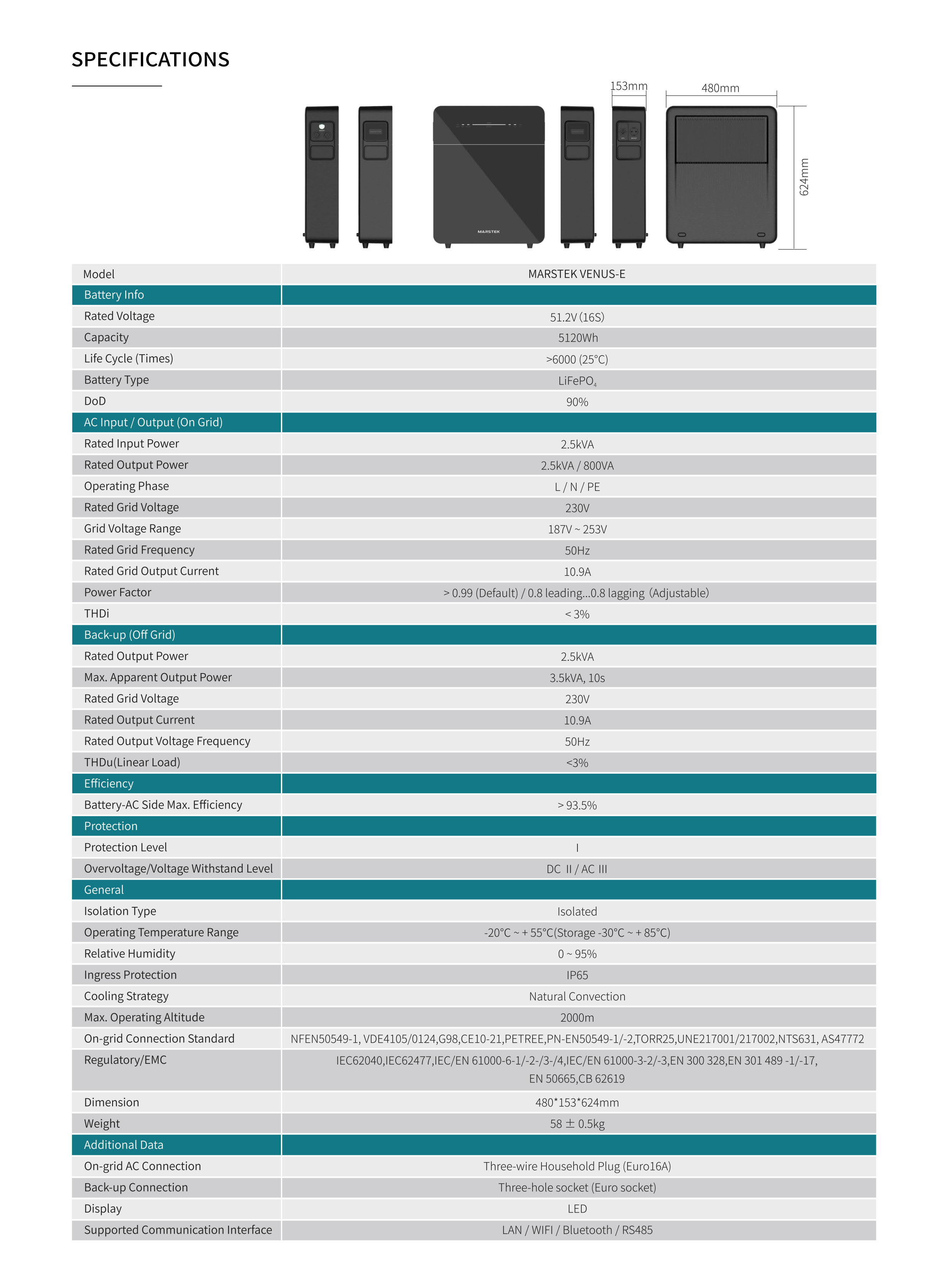 MARSTEK VENUS-E 3.0 Plug-in AC Battery Energy Storage System,Plug&Play,Backup 2.5kW/5.12kWh LFP Battery